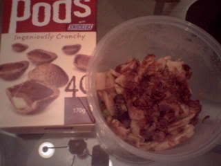 Wenwen gave me a box of Pods (choc biscuit plus snickers... SUPER NICE!!!) and a tub of my favourite fried nian gou the other day... finally photobucket.com is working and i can upload the pix~~~~