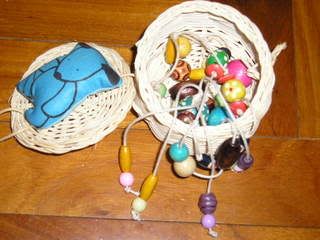 here's her little pressie for me~~ a multi-coloured necklace in this cute little basket! i totally love this basket! it has a little hook to open the basket plus a little cute doggie plush at the top!!!
