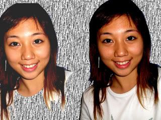 oh oh~ n i did threading today! roar~~~ trust me... the Indian facial shop in orchard is doing much beta job than the china one i went today! boooooooo~~~ i took a pic of myself when i reached home... and of coz... trying out my photoshop yet again... here's a pic of how i'll look like if i were tan on the right! i look like a philipino! WAHAHAHAH~