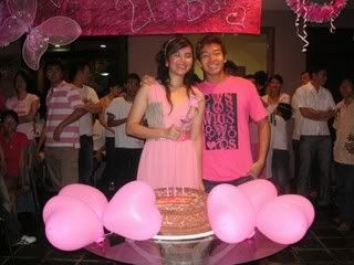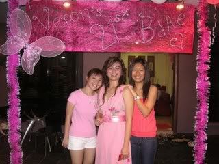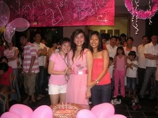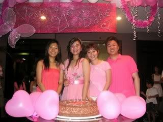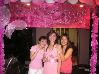 went Veron's hse wif Xin ard 6.30pm tt day... WE WERE THE EARLIEST!! i was totally to the theme by wearing a pink tee n white shorts... while Xin appeared in a CORAL RED CAMI insisting tt it's PINK!!! roar!!!