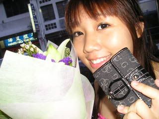 Here's us holding my lilies! wahahhahah~ today quite "zai" de... coz my bouquet big big... LOL~~~ UNLIKE THE FIRST BOUQUET OF ROSE TT INSINCERE TOAD GOT ME FROM TP WHICH IS STILL NOT YET OPEN, ALMOST WILTING N MINUTE BEYOND SPEECH