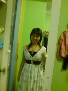 at first was contemplating wan go find angching n her frenz de, bt hor, i kn i abit high le... if i go... i will tarnish my ladylike reputation... *wail* not good to gif ppl kisses on first session lahx~~~ next time k! i tink jiawen damn happy i go find him, coz when i say i gg meet him, he got a new empire dress fr Bugis.. bt i tink he tot he has a 1.7 gf.. coz the dress he gave me, my small frame can only make it into an extremely off-shoulder dress, and it would droop down if i move.. BT NICE EFFORT!!! i will visit u more often! LOL~ sorry for the ugly look on my face lahx.. i went home bathed le den tk pic.. super tired n high already... and ugly chin muz be disappointed tt his tactic of getting me drunk was NOT successful! LOL~~