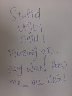worse.. today i fgt sth in the office, went back to tk.. heard her gossiping abt me showing her black face while she teach me things.. NABEI! today i go learn, she verbally tel me, den when i say dunno, she gif me some printscreen.. ask her where to even find tt page on the printscreen: aiyah, u play ard wif computer sure knw de! den i say: aiyoh.. dun wan say oso no need like tt.. den she diam diam.. after tt boss ask me help out, i say i dunno how to, she snapped: u dunno how to ask ar.. this deh gal is ONLY 19! wah laox.. say til like tt.. so i retorted, actually i asked, bt maybe the person i asked din't understand?