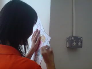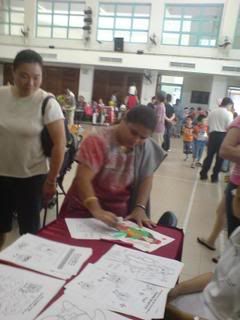 setting up the booth.. oso met wif problem.. coz the Clark's baby shoe ppl INSISTED tt they get 2 booth's space. and supposinly we are supposed to be tendering the colouring booth mahx... so in the end... we got shifted to one corner.... NAHX! DUN BUY FR THEM!