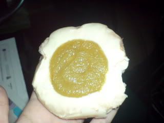 xiaoben says she tot it was an egg... excuse my unglam background.. was eating newspaper n eating breakfast.. call me intellectual al.