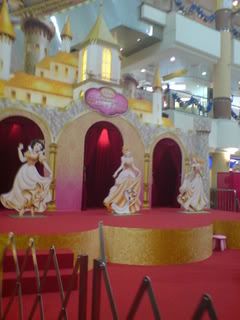 after work... i roamed abt the streets without a particular place to go... before reaching home... n mummy offered to treat me eat Jap food coz daddy is meeting client tonite.. so off we went to compasspoint for sakae sushi... they r hving disney princess promotions there.. kiddos are being dressed up in their fav. princess n tk photos.... this is the stage...