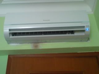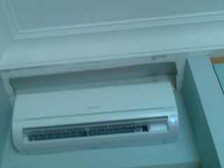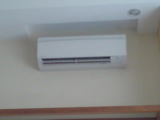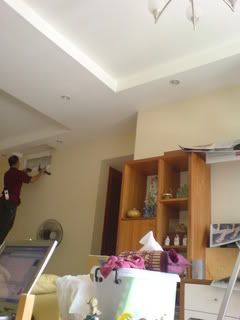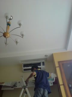hip hip HOORAY! today's my DAY! they finally came down wif my new aircon! *_* they spent ard 4 hrs fixing all 4 aircons..... this man doing e job in the second pic is damn pro n fast....